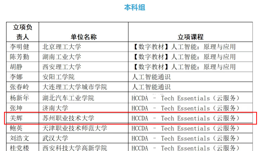 11月 27日,中国软件行业协会、信息技术新工科产学研联盟联合公布了2025年 “国产软件进课堂”第三期教学改革项目立项名单。计算机工程学院关辉老师主持的“基于华为云技术的云计算课程教学改革”项目成功入选高职高专组教学改革试点项目,这是我校作为华为认证级ICT学院,深化产教融合、推进教学改革创新的又一重要成果。